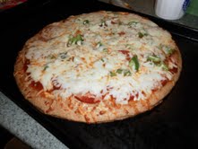 Last week I set the world record of Jameson in distance running. I ran a whopping 17 miles, which was a personal best. This made me feel good that I have finally run such a long ways, I'm hoping to run 20ish this week, barring my foot lets me. so for my 17 mile run I parked along the 7 mile Burlington bike path. So when you go to the end and back, its a total of 14 miles. So I was parked around the 5 mile mark and went to mile 0. So when I got to my car the first time I had gone 10 miles, time for some Chocolate Outrage Gu, I'm getting ready to order that stuff in bulk. I went to the opposite end which is the 7 mile mark, and then went about a half mile farther. So when I went by my car the SECOND time (mentally almost impossible) I had gone 15 miles, I continued another mile to North Beach and turned back. I was so close to wanting to stop and walk, but I never did. I wanted to soooo bad. This run was more grueling mentally then it was physically. Not that my legs weren't really tired and lame, but this really tested my mental endurance/will as well. My breakfast was a slice of the pizza you see below.